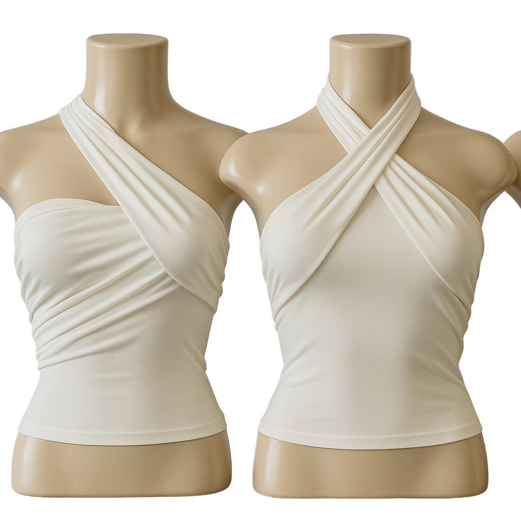 Descubre la versatilidad absoluta con el Top Multiuso “Versa Luxe”, una pieza diseñada para adaptarse a tu estilo y a cualquier ocasión. Su tela suave, elástica y de alta calidad permite crear tres estilos diferentes con la misma prenda: